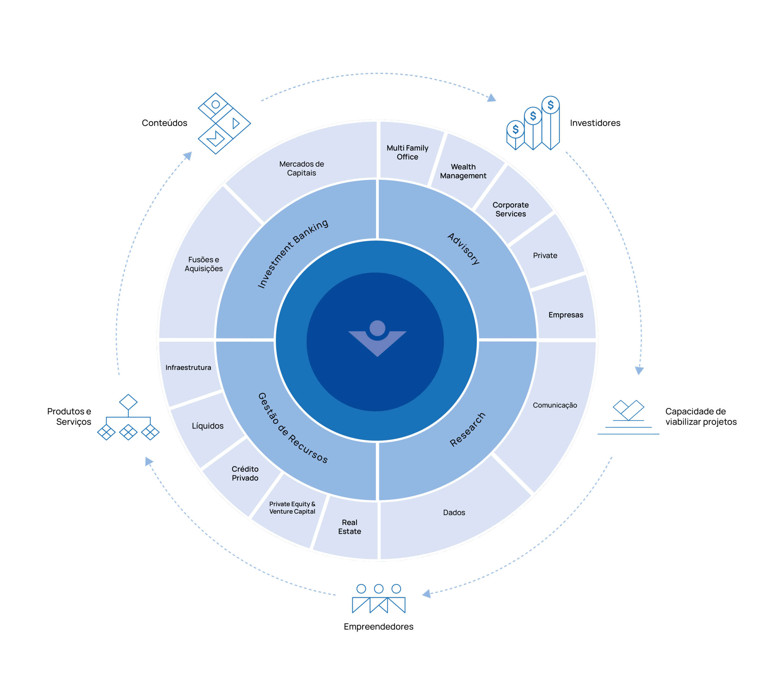 Tudo isso, por meio da complementaridade entre as áreas de negócio da companhia, que permite a estruturação de produtos interligados e customizados